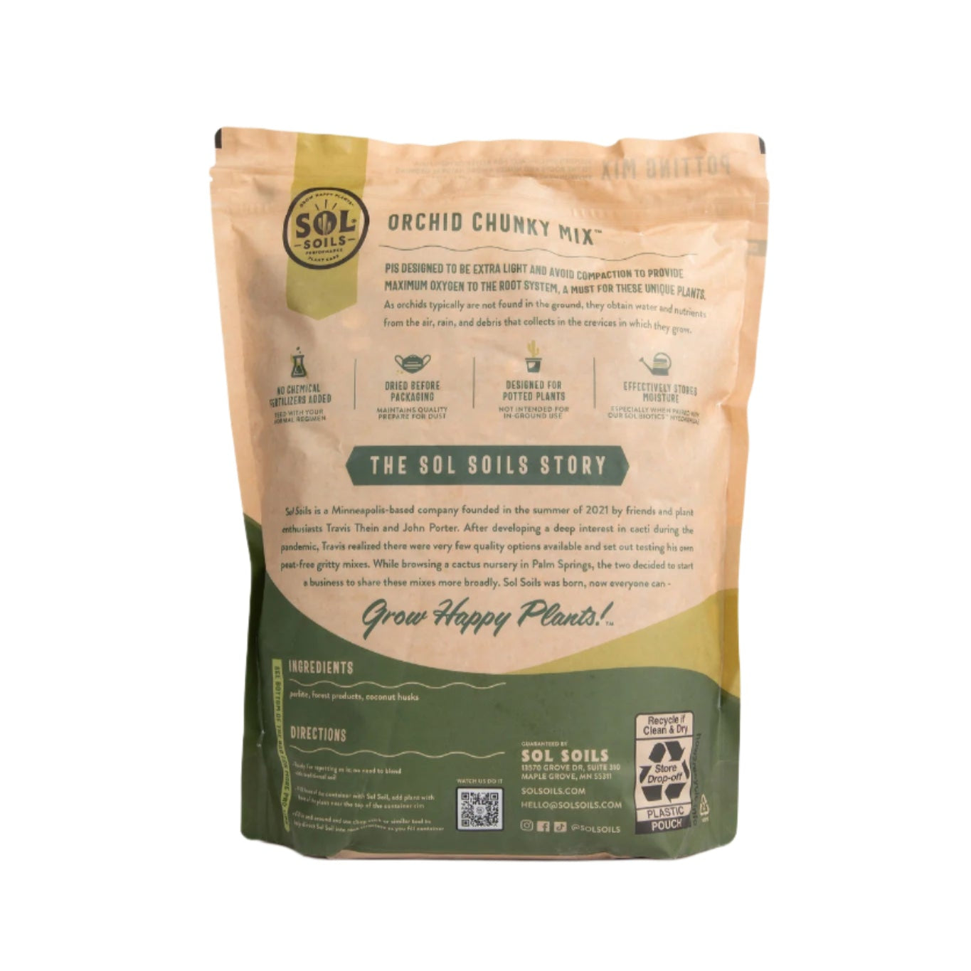 - Organic: coconut husk chips, recycled forest products